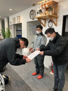 このたび、当社で内装下地工事に従事しているベトナム技能実習生2名が、